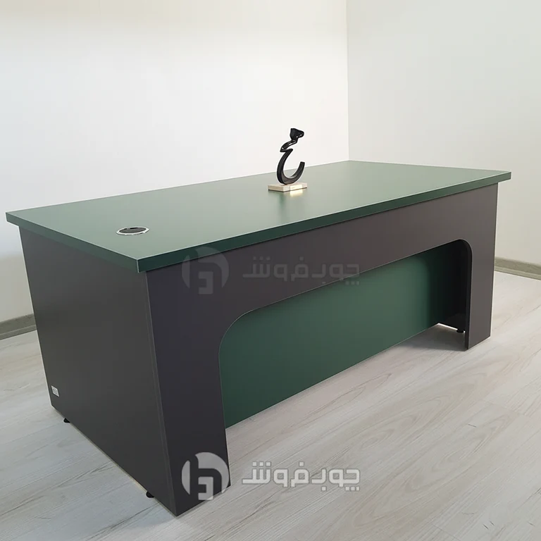 میز فوق از ورق ممتاز MDF از برند مطرح تیسان طراحی و تولید شده است، طول این میز 135cm عرض آن برابر با 70cm و ارتفاع استاندارد آن از کف زمین برابر با 76.5cm میباشد، این میز دارای جاکابلی گرد از فلز زاماک میباشد که به جهت عبور شکیل تر کابل های کامپیوتر، شبکه و تلفن به روی میز تعبیه شده است.