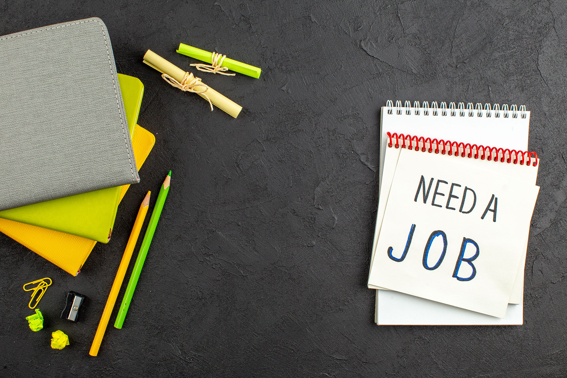 top-view-need-job-written-notepad-yellow-green-pencils-notebooks-black-1536x1...